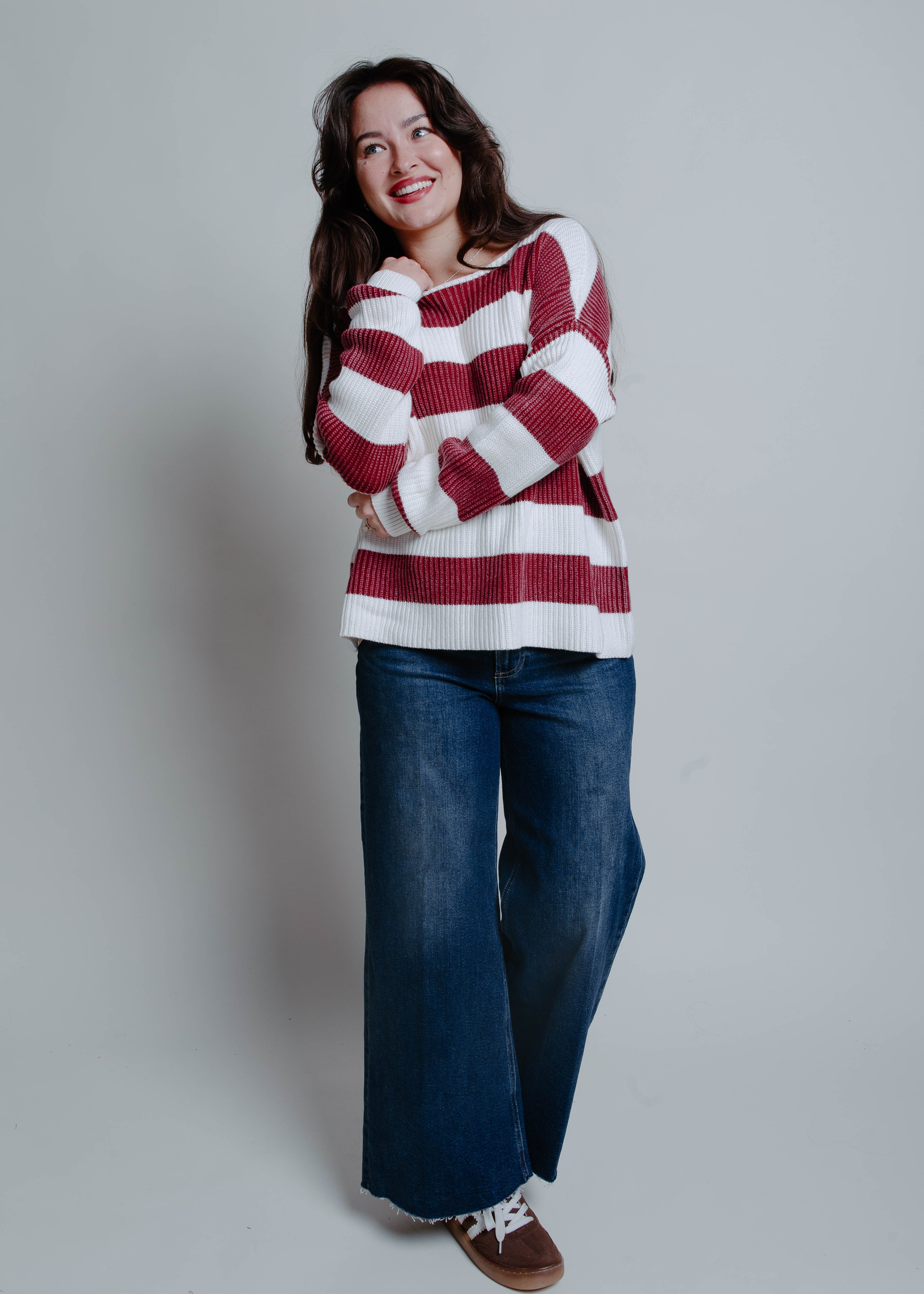 After Hours Striped Sweater - Wine
