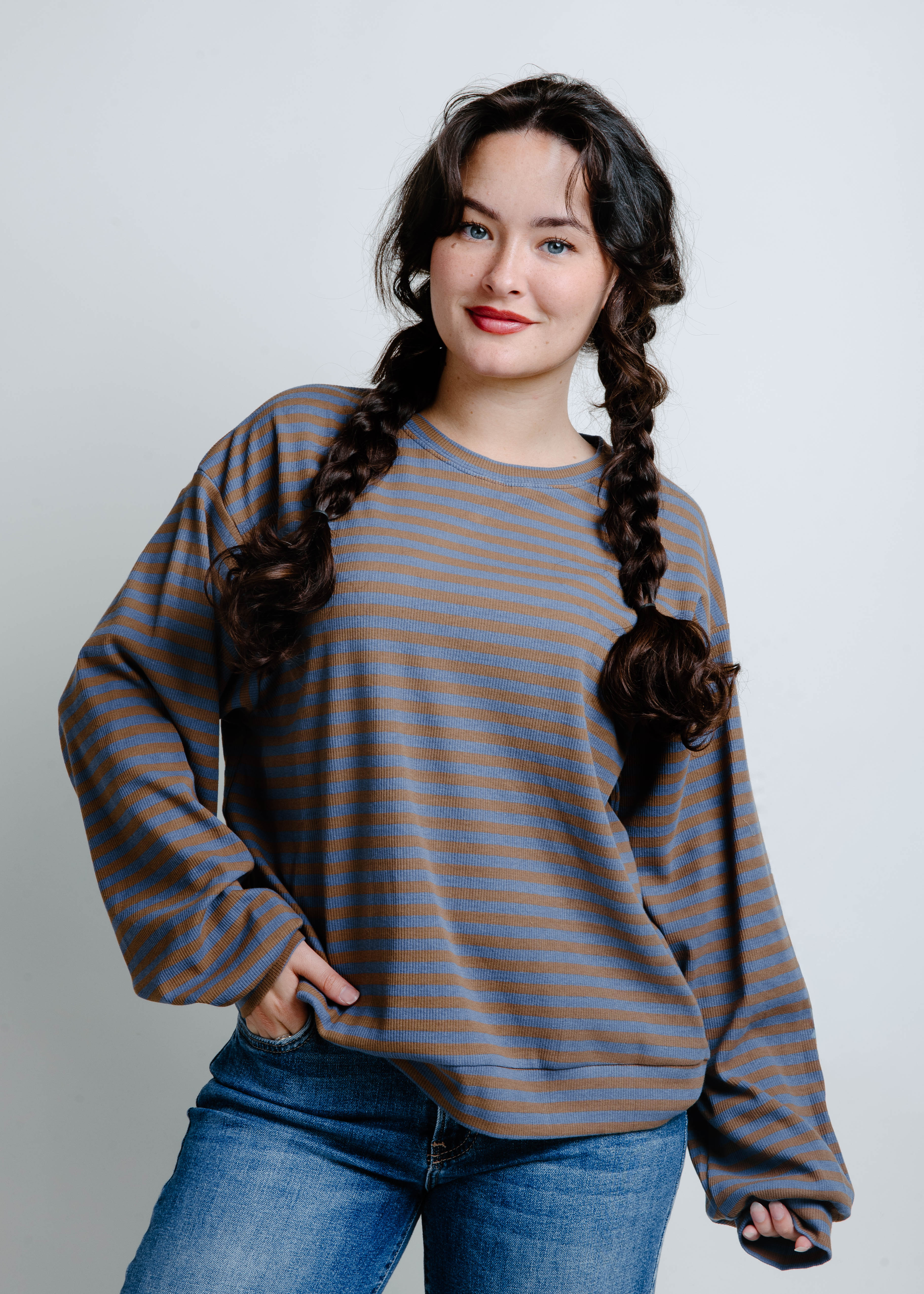 - Olive/Brown and Dusty Blue Stripes