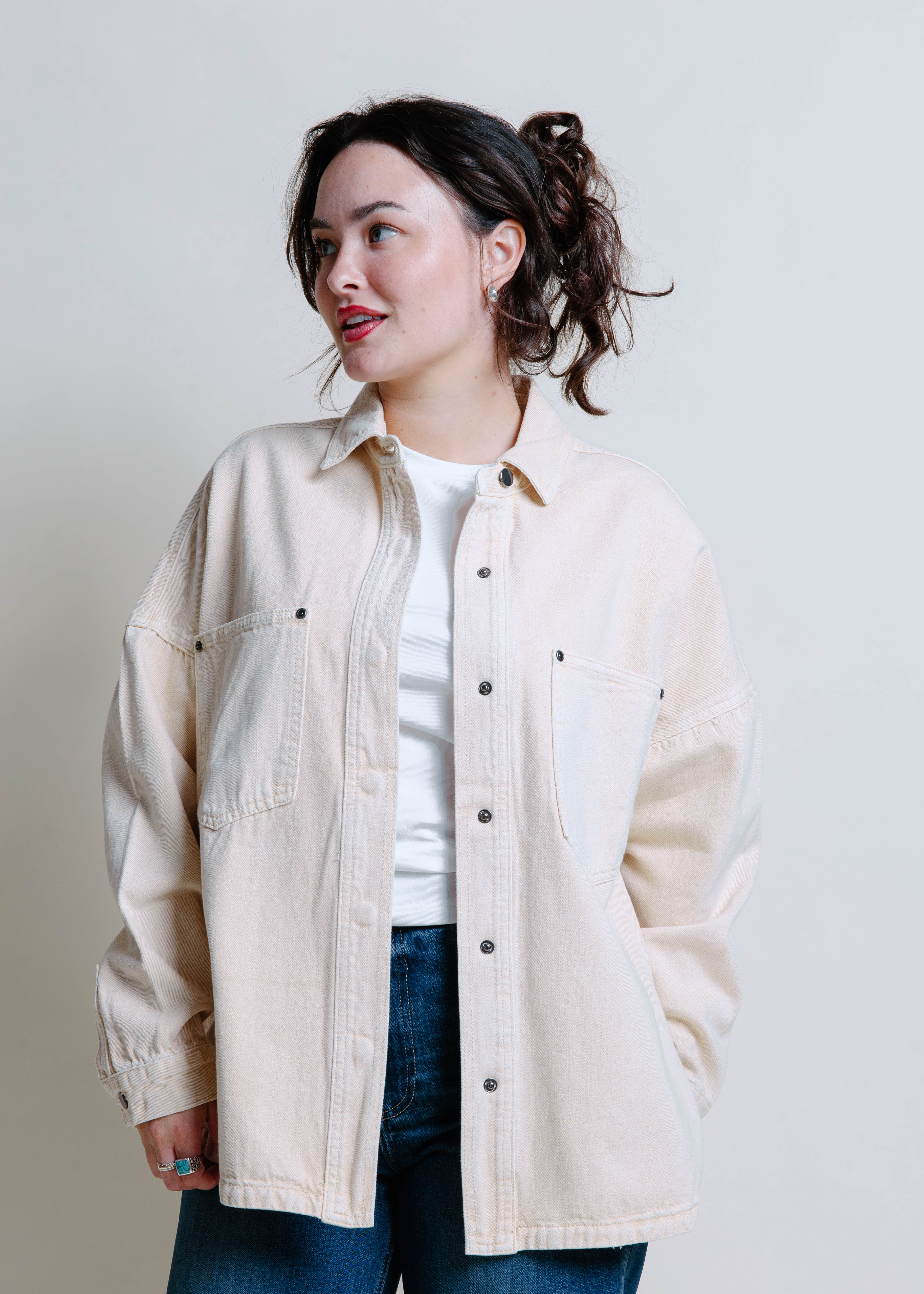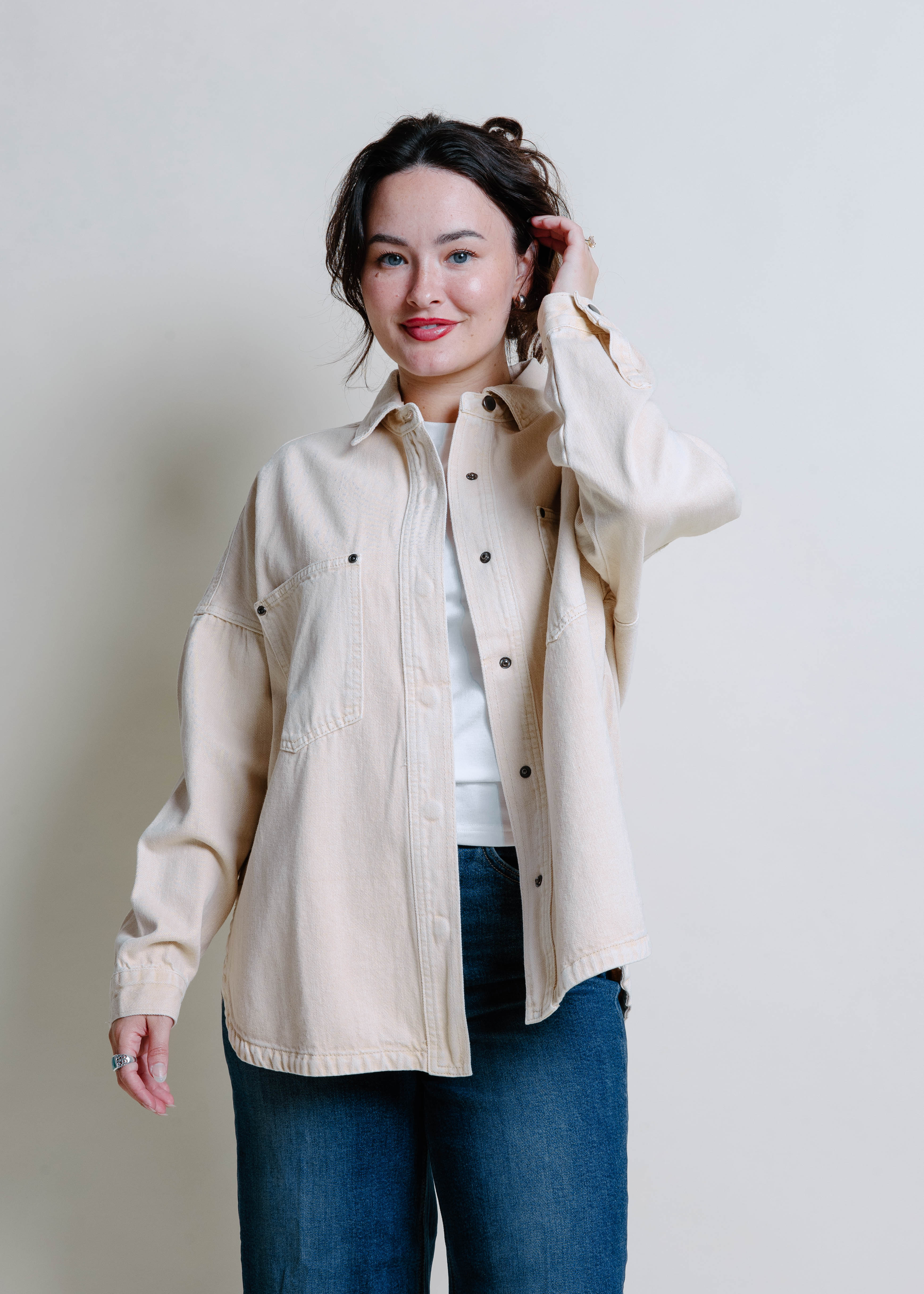 Eliza Denim Shacket - Beige