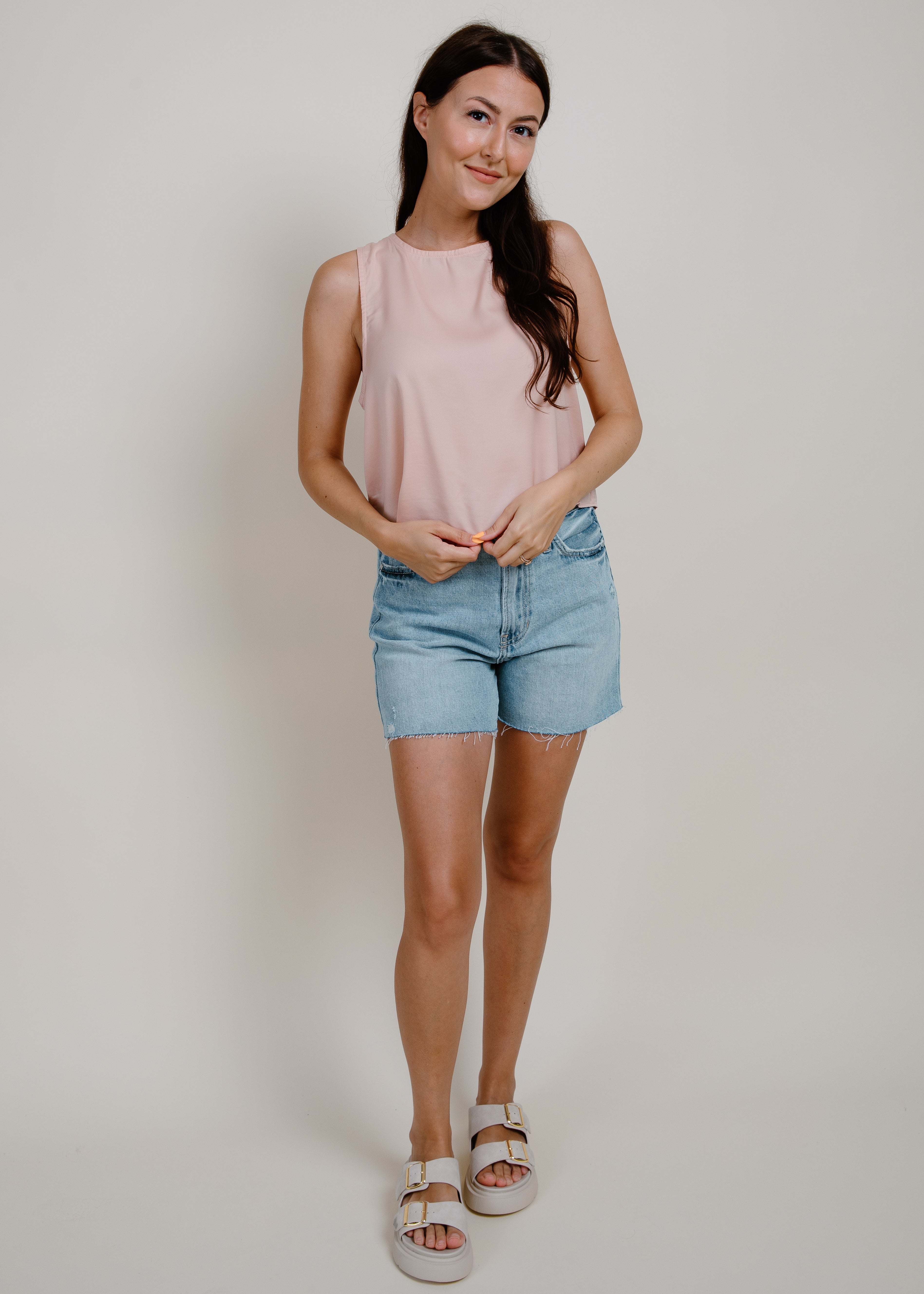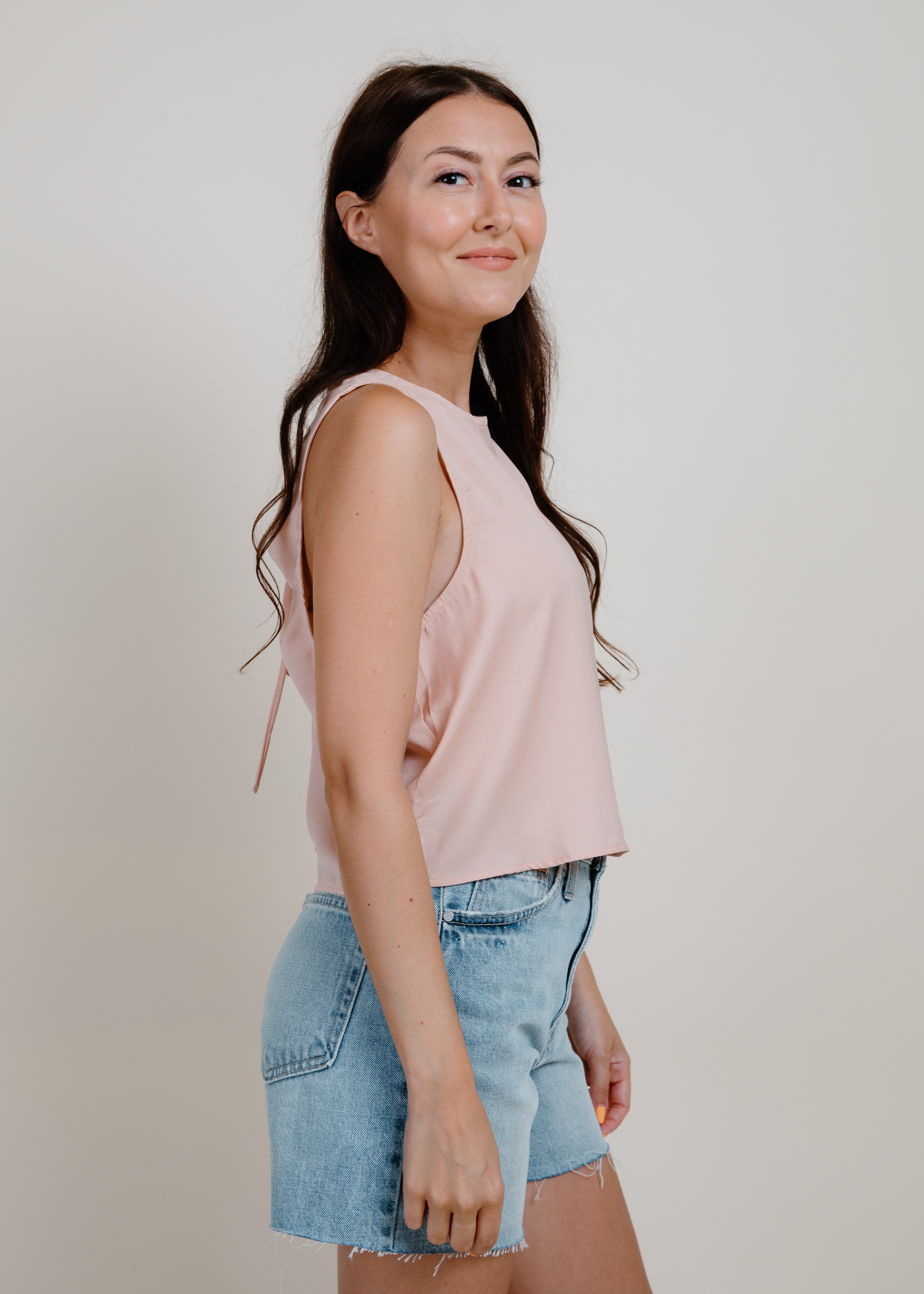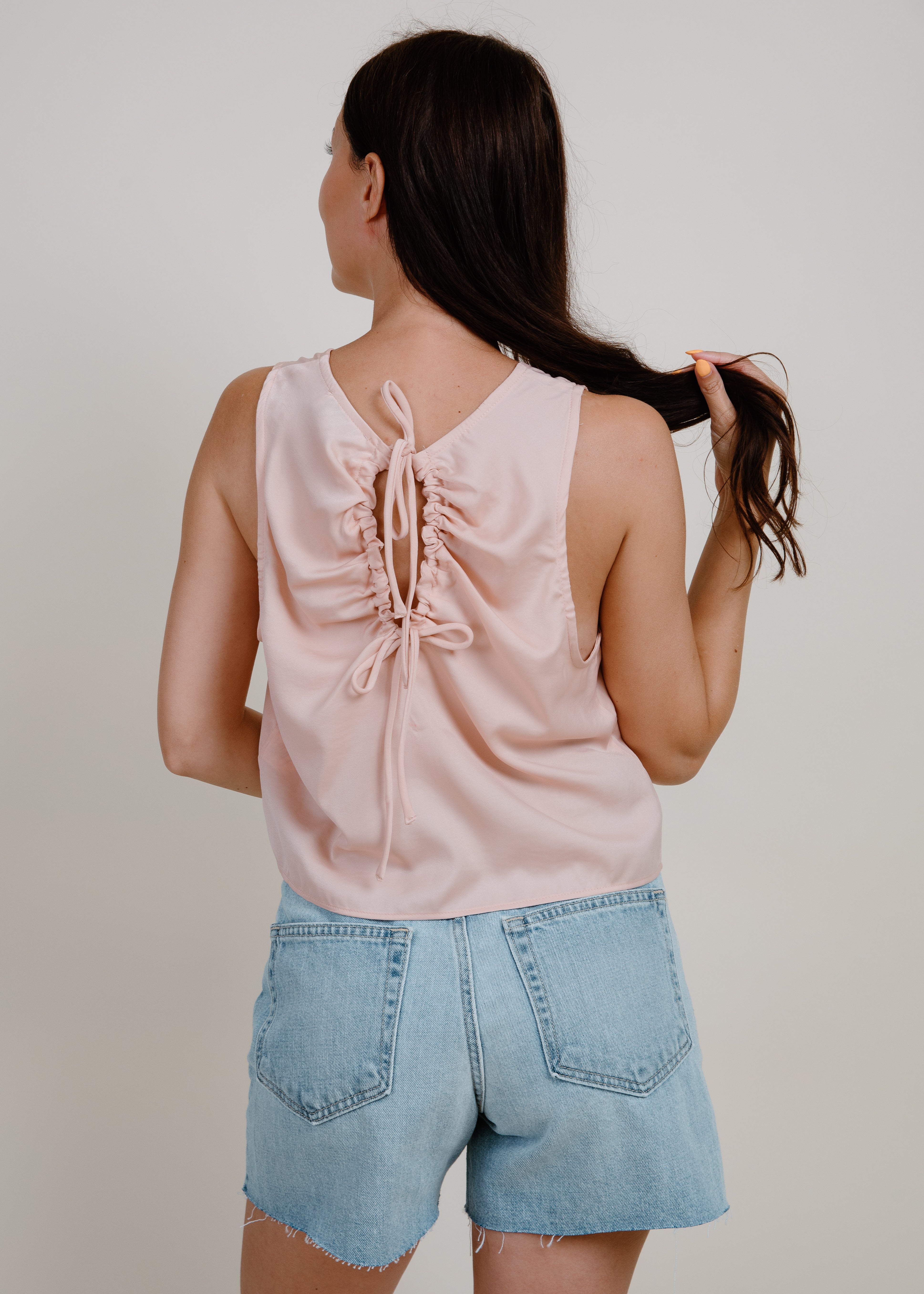 The Fast Lane Tank features a girly overall look and feel, in a soft feminine pink along with a detailed tie-back for a touch of fun. Don't be afraid to show off your playful side with this unique tank!