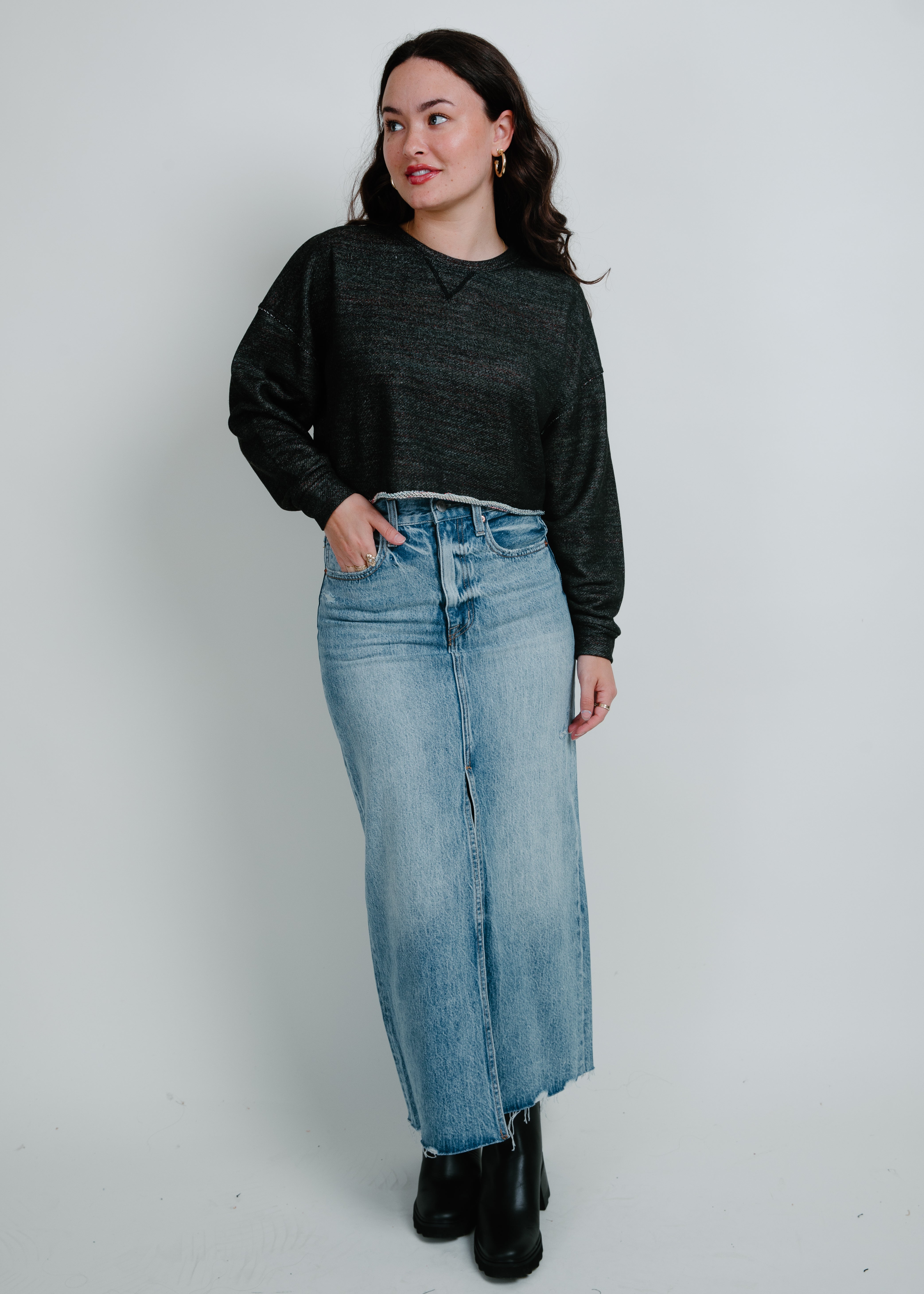 Running Errands Cropped Sweatshirt - Black