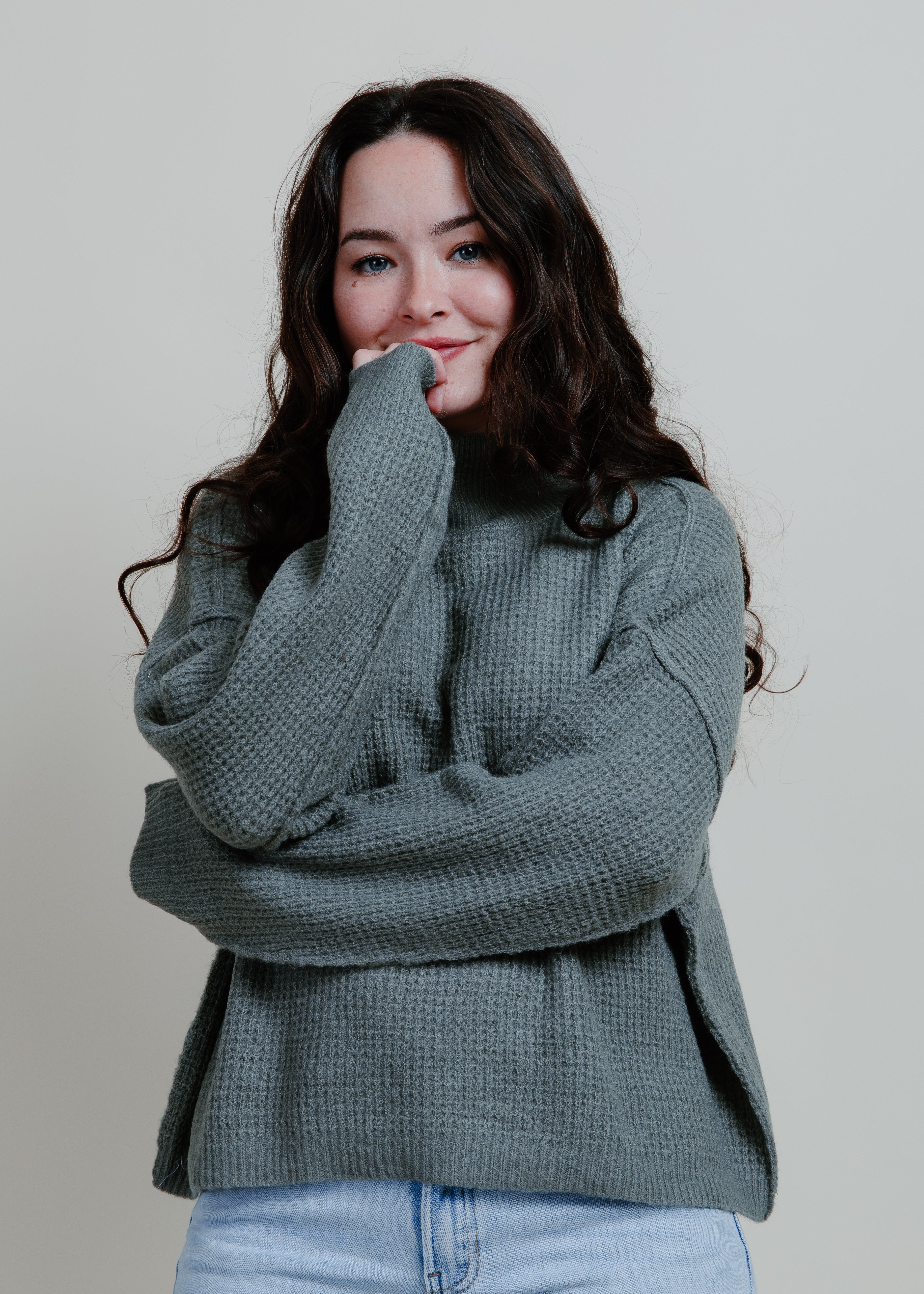 Kinsley Waffle Knit Top - Olive