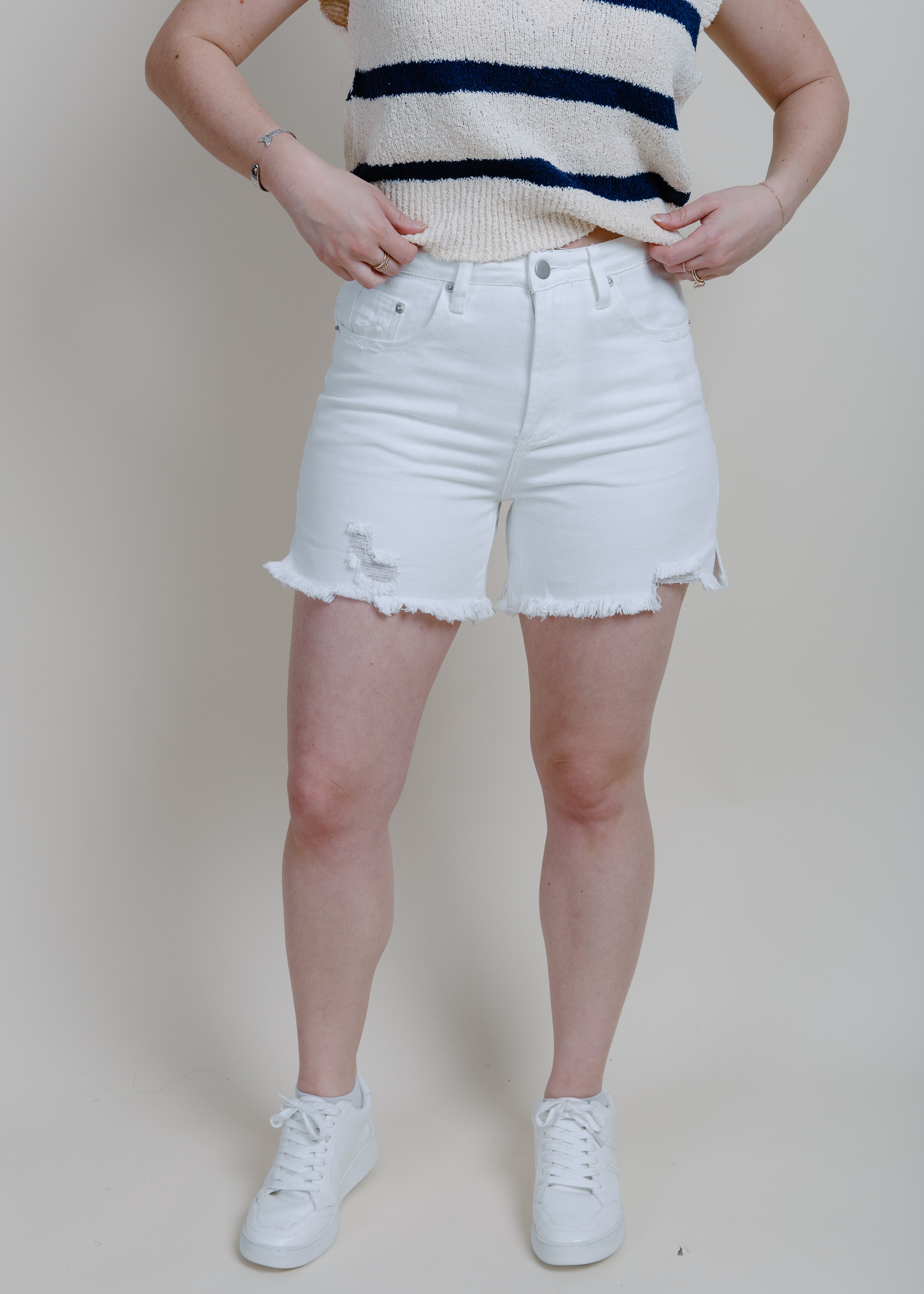 Miriam Mid Length Denim Shorts - Ivory
