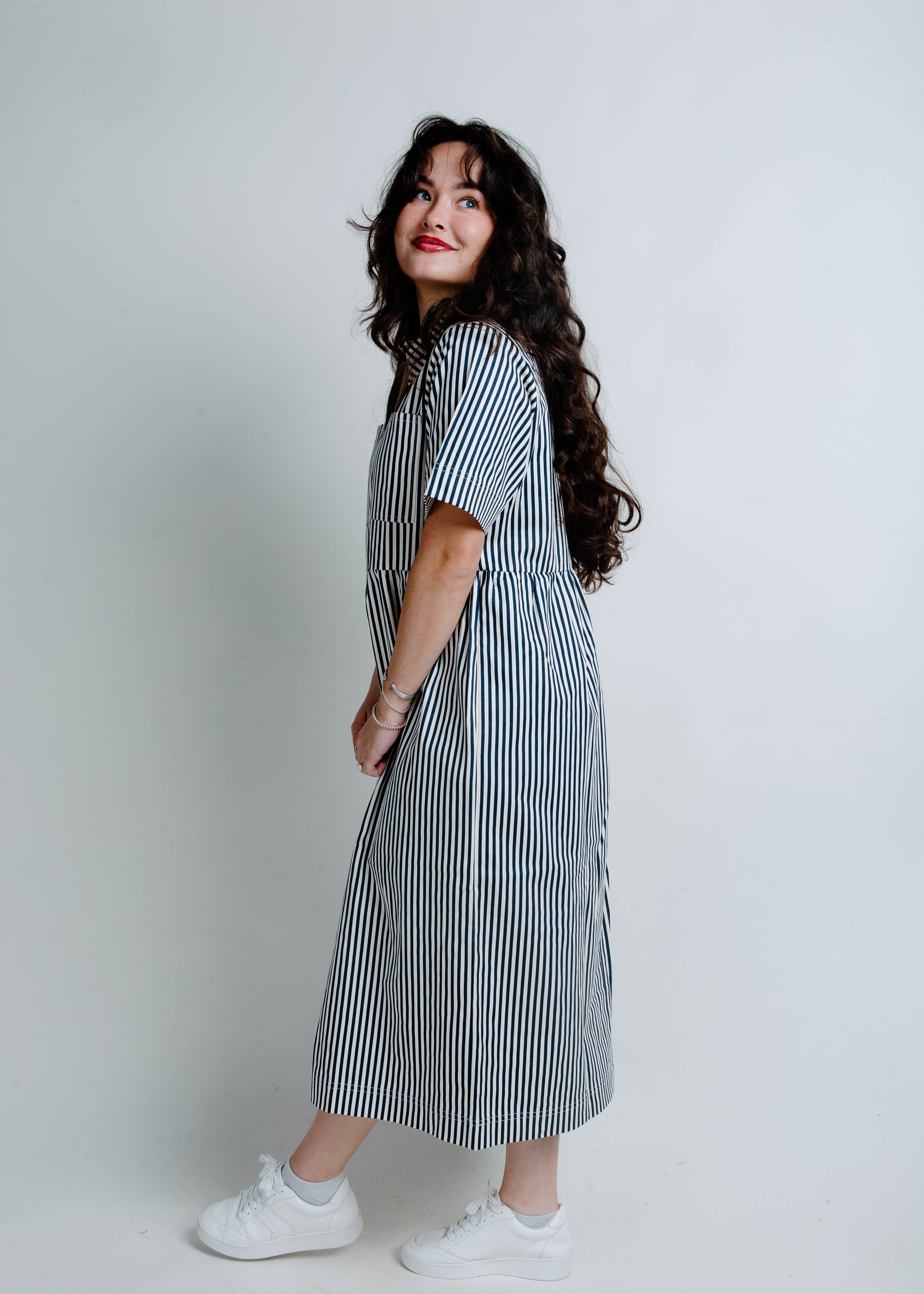 - Vertical Navy and White Stripes