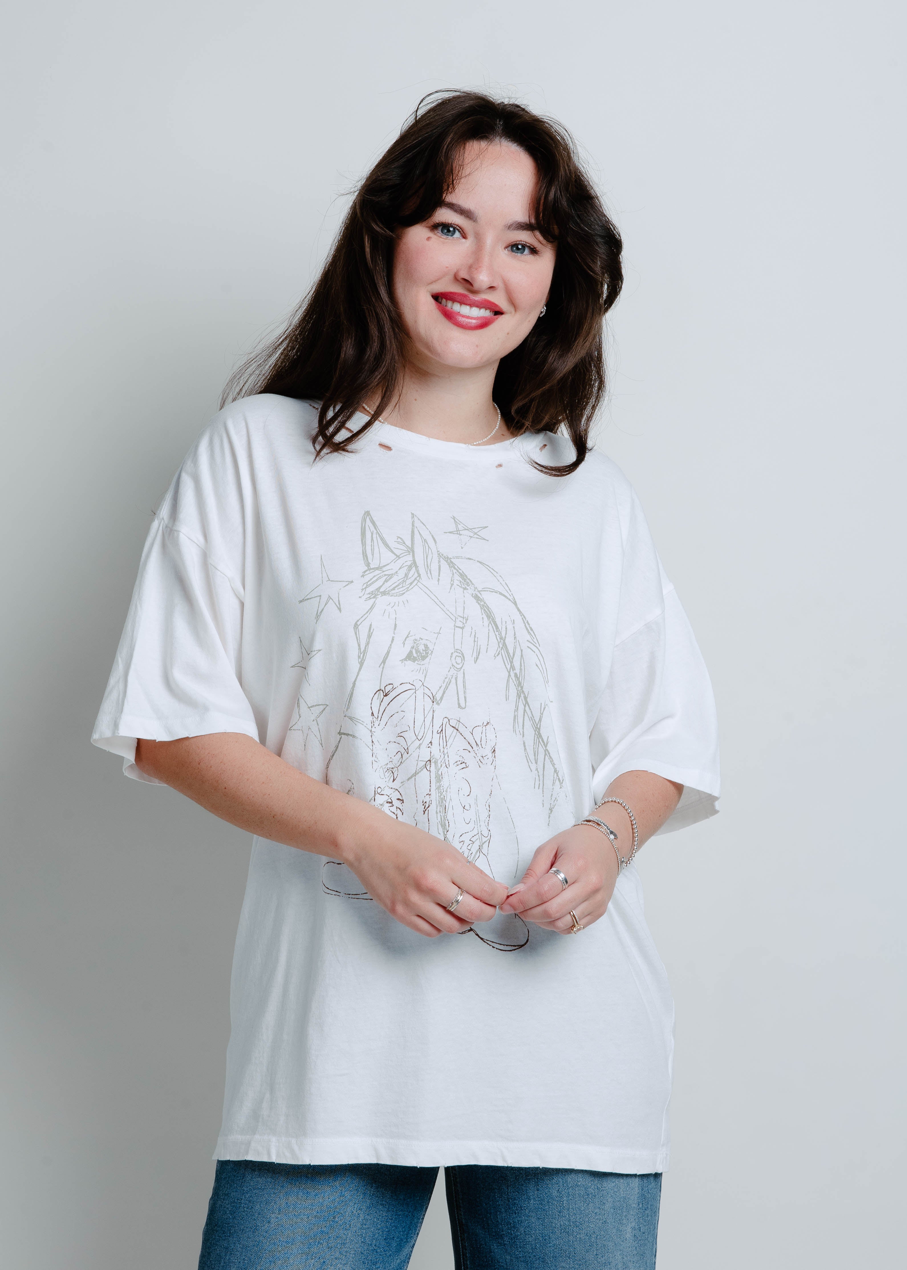 Sketched Horse Oversized Graphic Tee