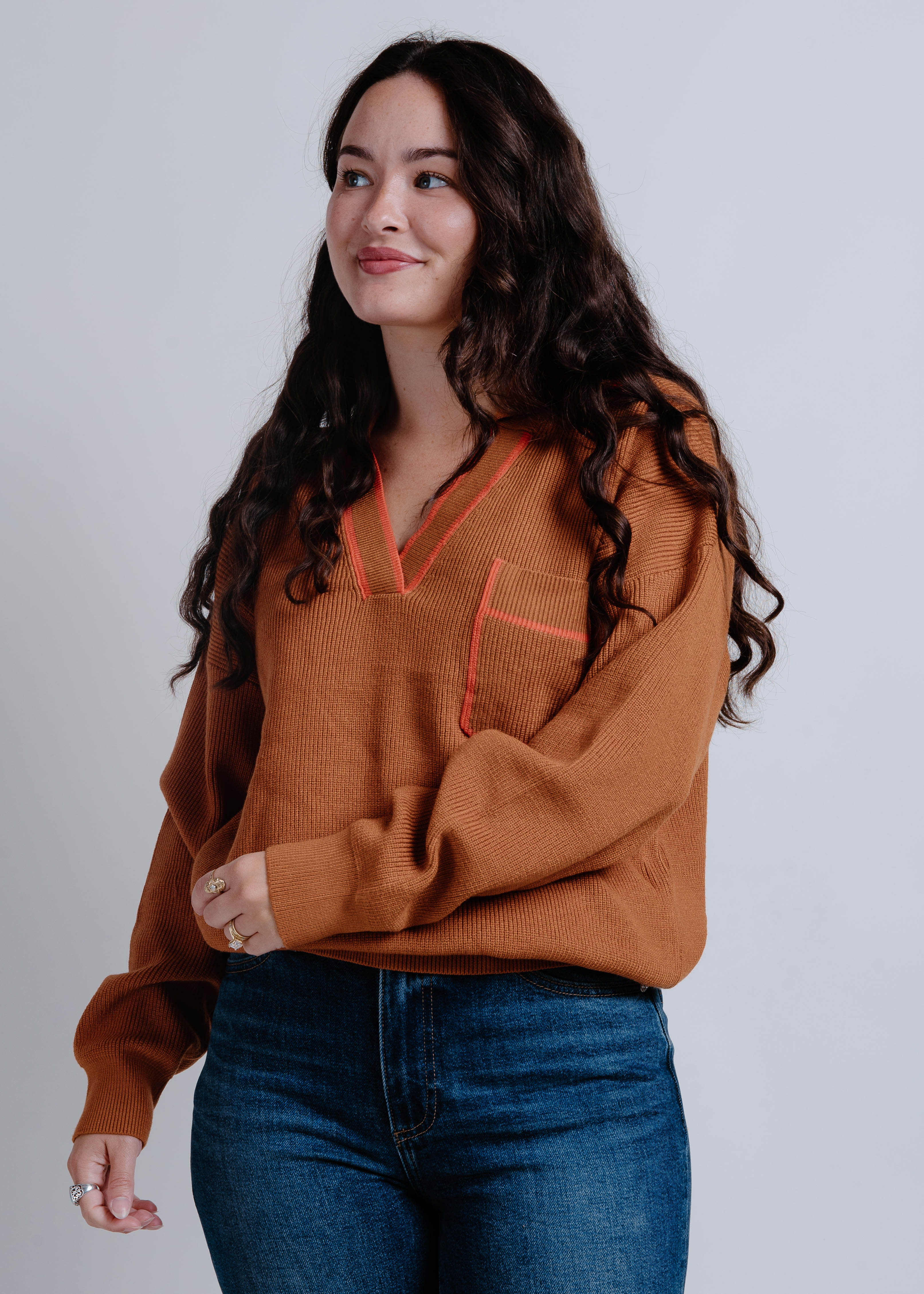 Della Collared Pullover - Rust