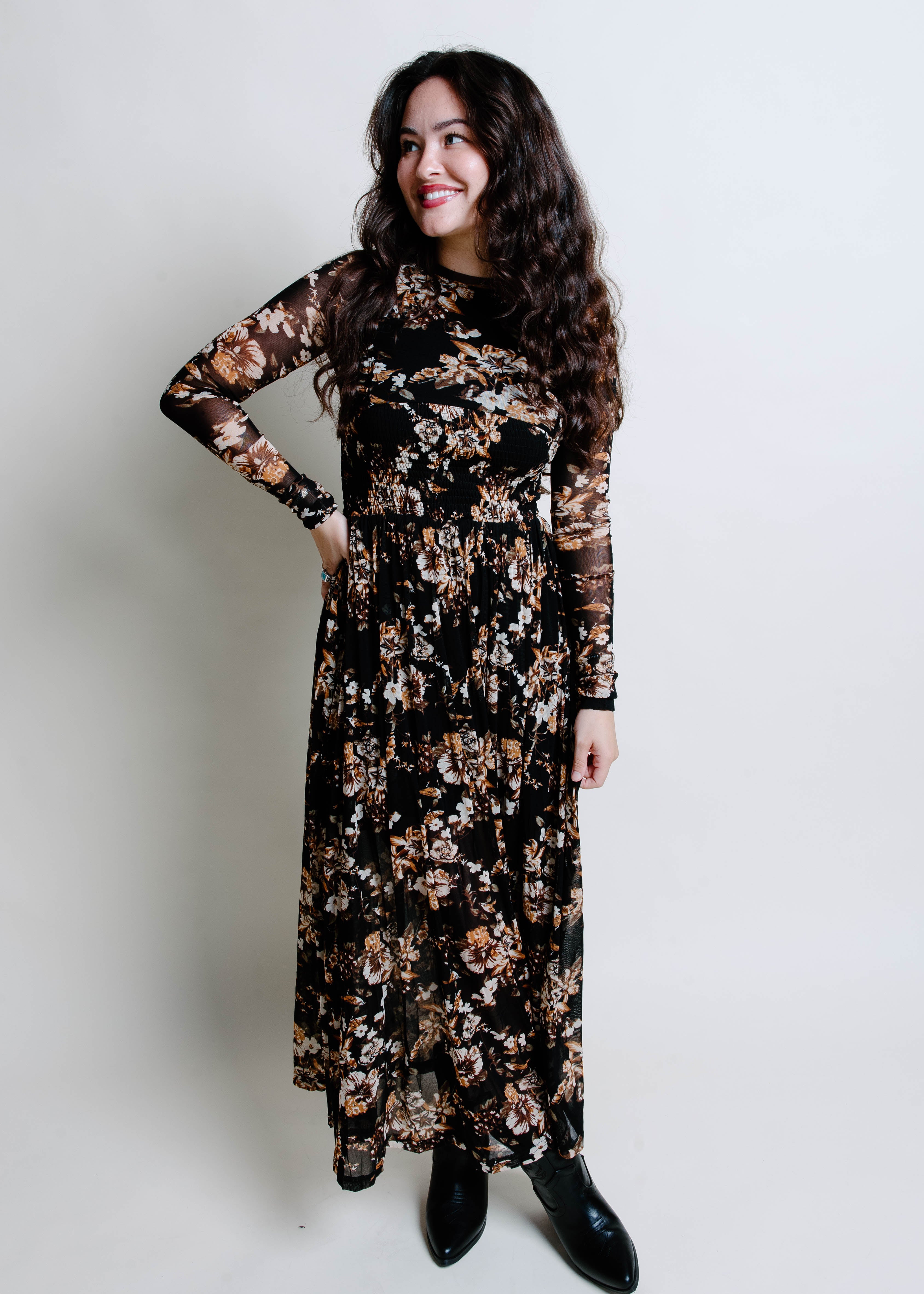 Malaya Floral Mesh Midi Dress