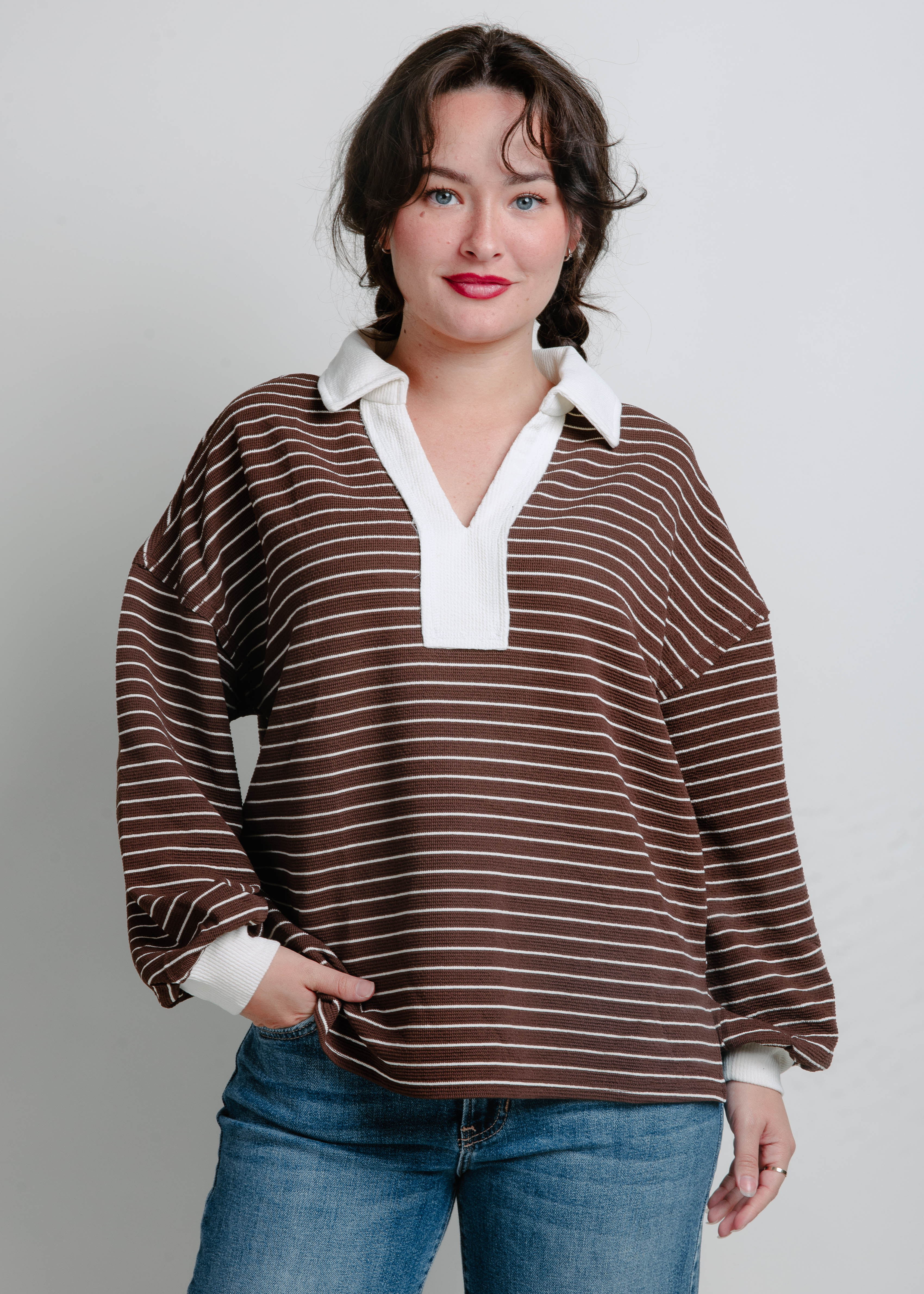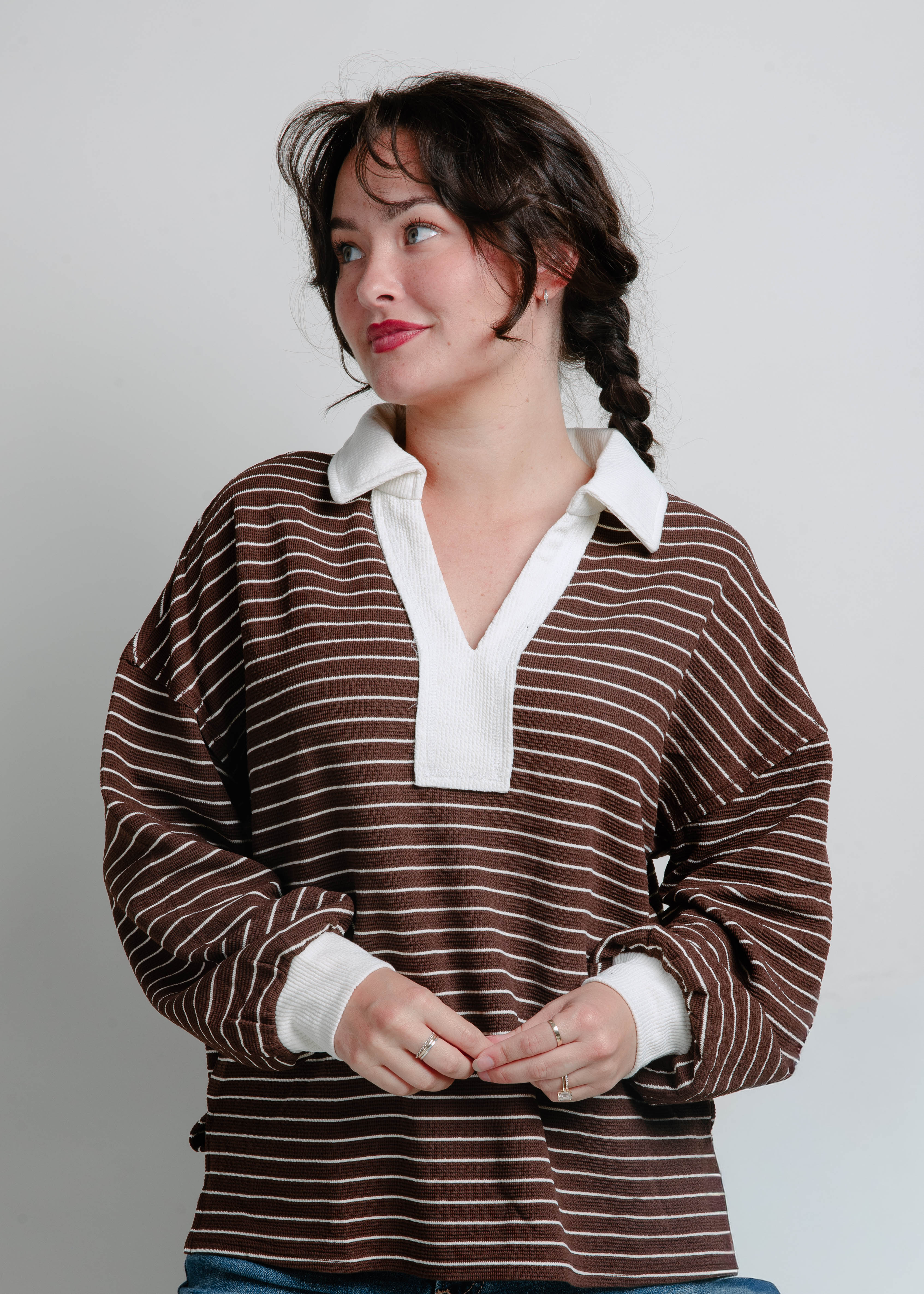Corbin Striped Knit Top - Brown